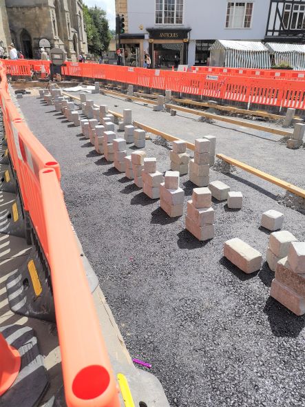 After much deliberation the highways department have recently begun work replacing the setts to be finished by August. However, it’s going to take a lot longer than was originally anticipated as they had to shut down for several weeks due to a gas main that I undersand was not buried deep anough. Here’s a photo of the work in progress. Fascinating how they do it.