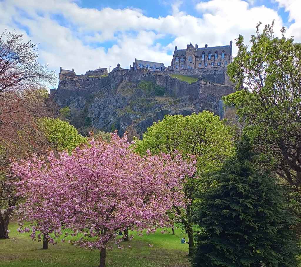 This was taken from Prince’s St looking up at the castle. I just managed to get the contrast of the castle walls and the blossom.
